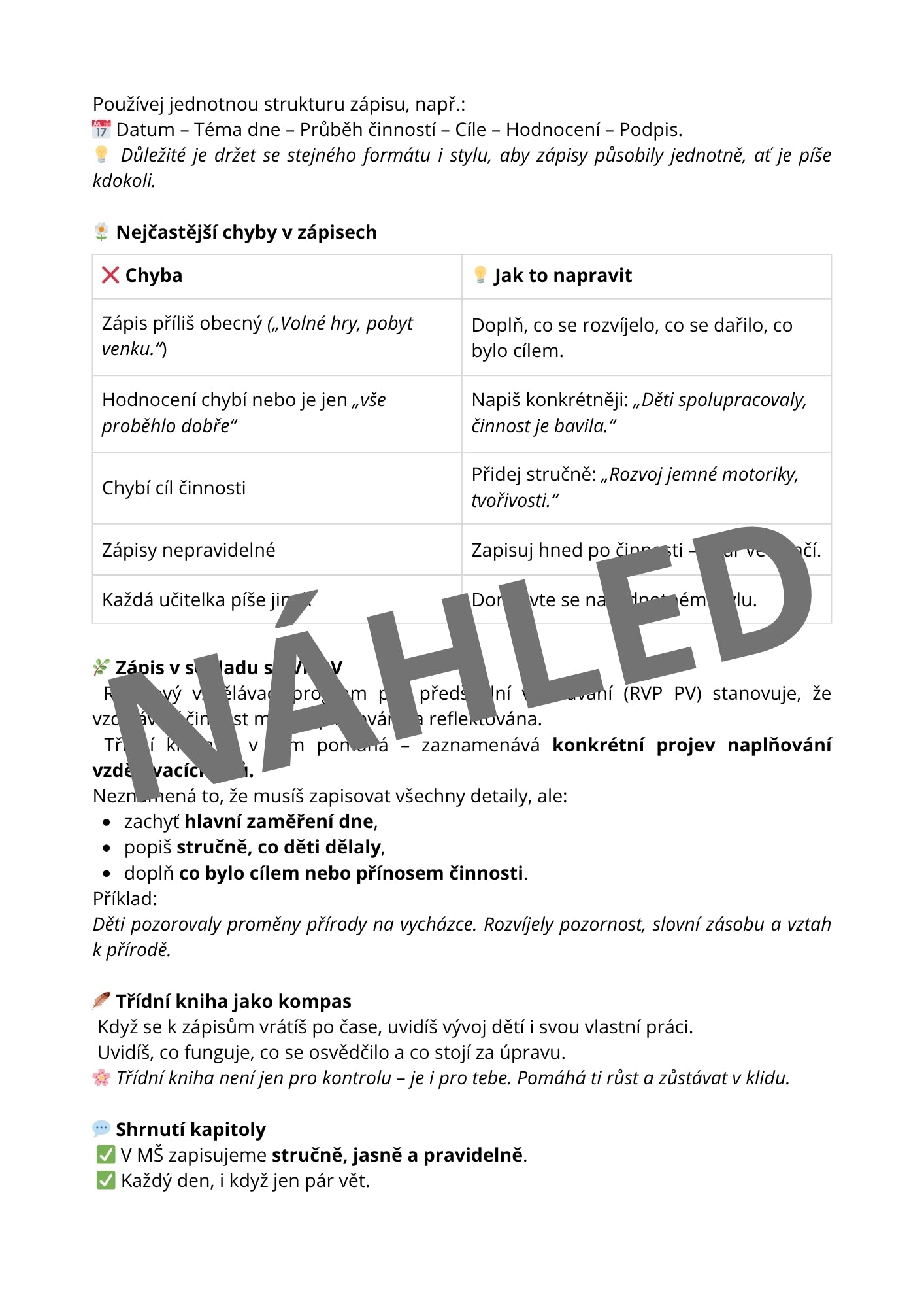 - formulovat denní záznamy tak, aby byly srozumitelné a lidské 💬